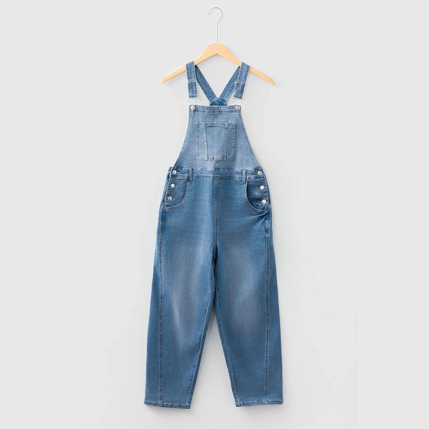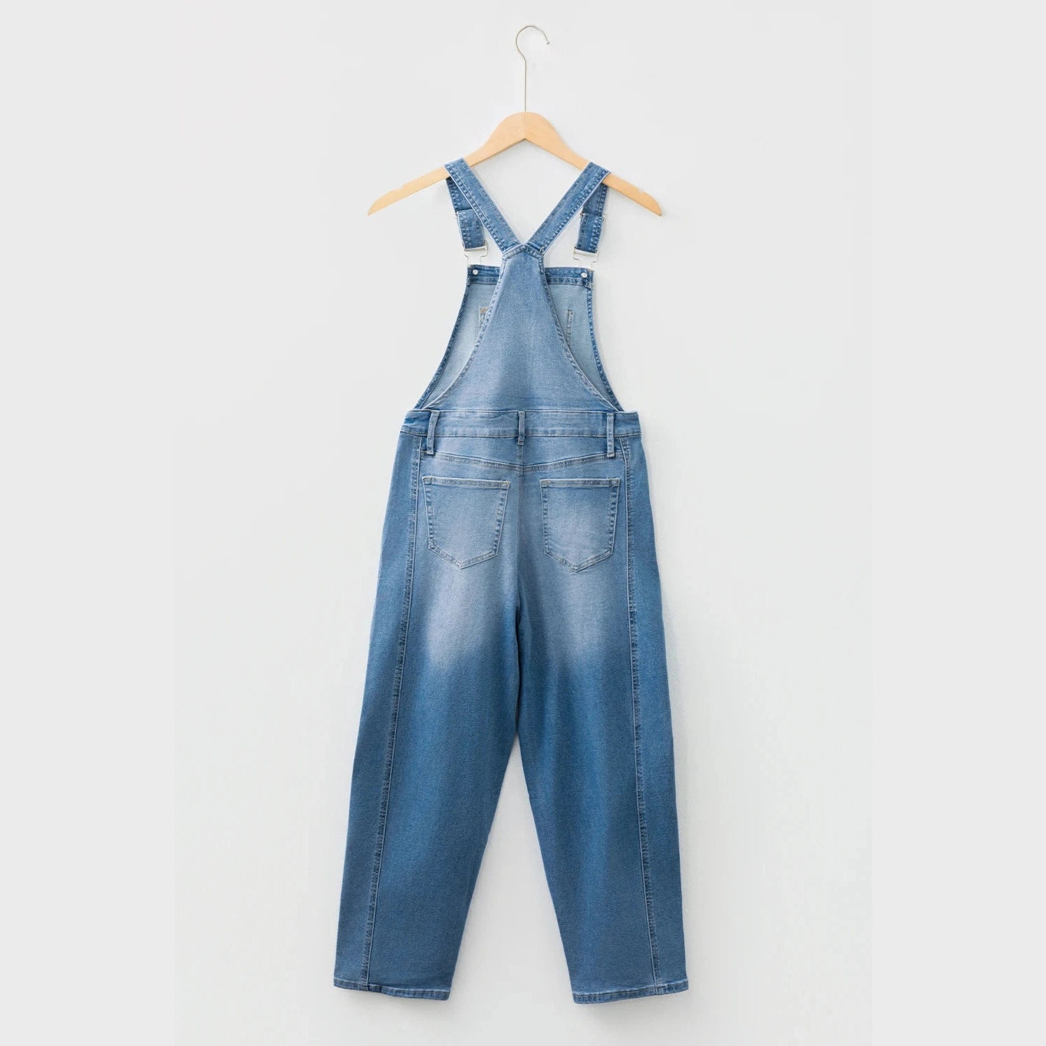 Abbie Dusk Blue Adjustable Buckle Barrel Denim Overalls