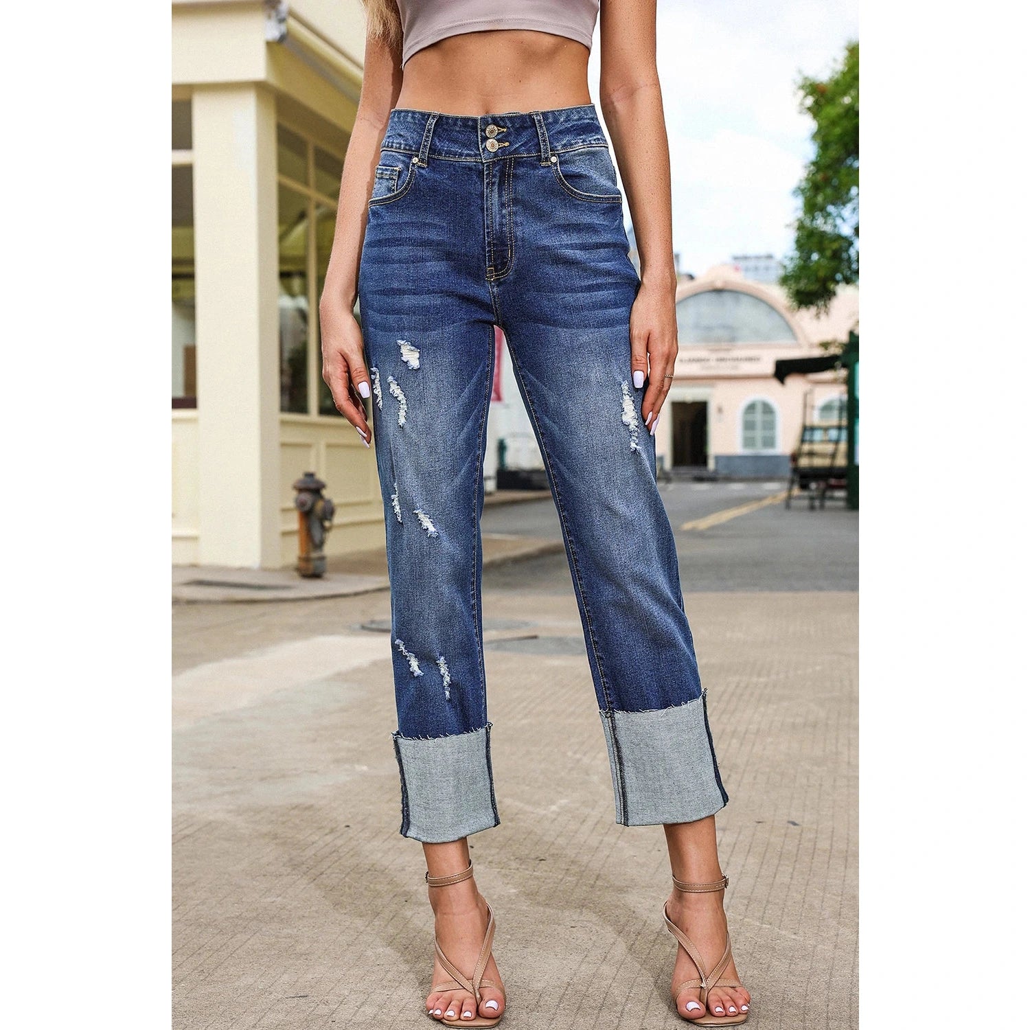 Ana Blue High Waist Distressed Straight Leg Jeans