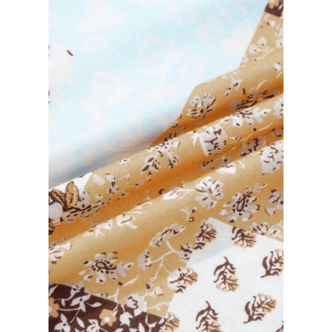 Bella Rose Floral Printed Contrast Patchwork Long Sleeve Top