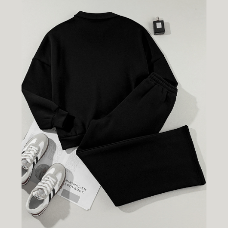 Bellah Black Drop Shoulder Zip Up Jacket Drawstring Pants Active 2pcs Set