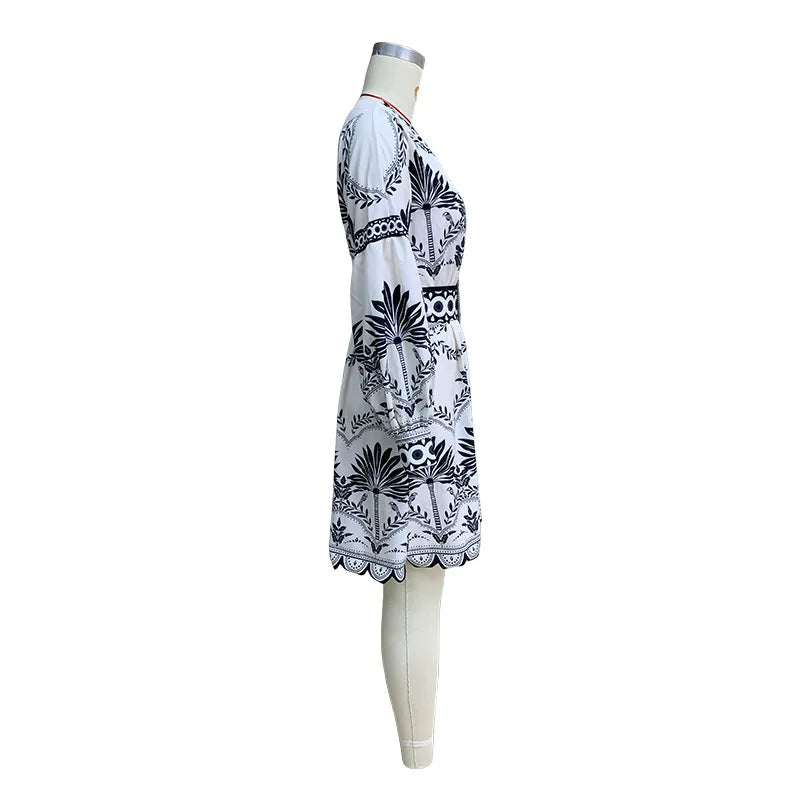 Callan Puff Sleeve Deep V Neck Mini Dress