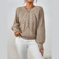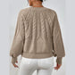 Candra Khaki Cable Knit Lantern Sleeve Sweater