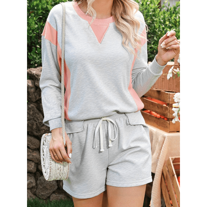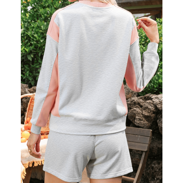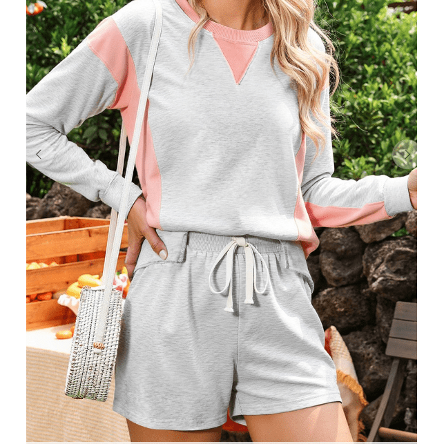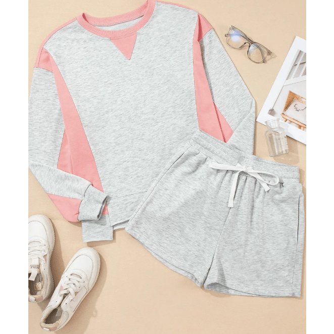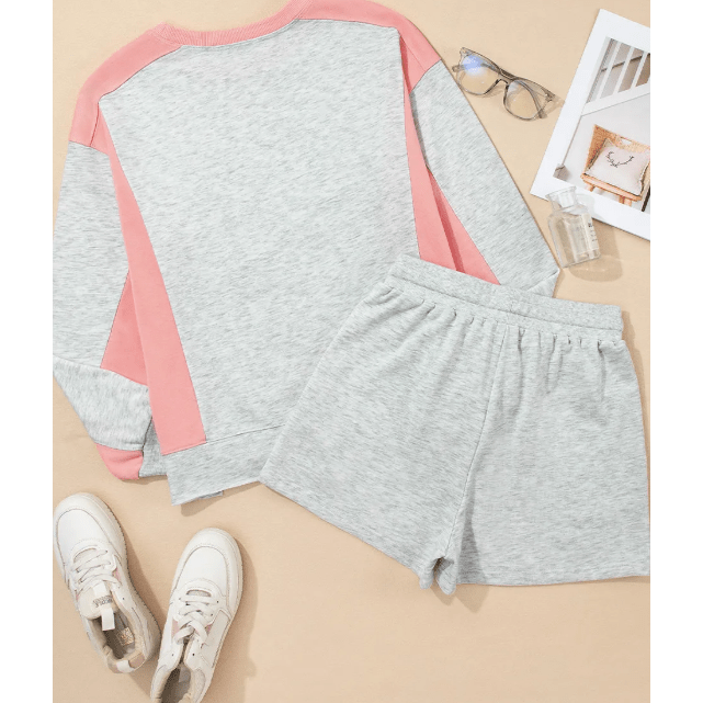 Cari Light Grey Color Block Raw Hem Pullover and Casual Shorts Set