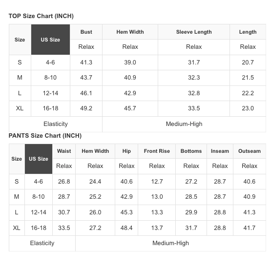 - It includes a zip up pullover and drawstring loose pants.