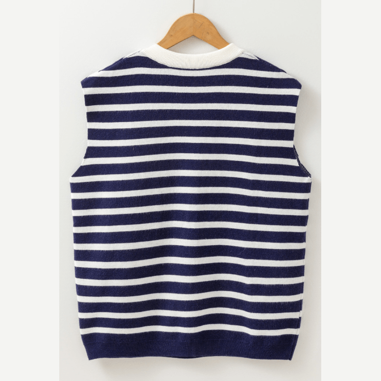 Cherish Blue Stripe Knitted Bow Decor Sweater