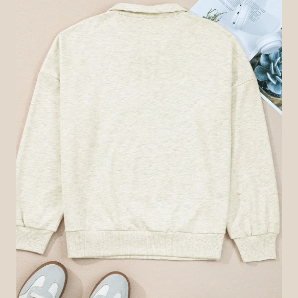 Clarey Light Grey Contrast Striped Patchwork Zip Collar Pullover Sweatshirt