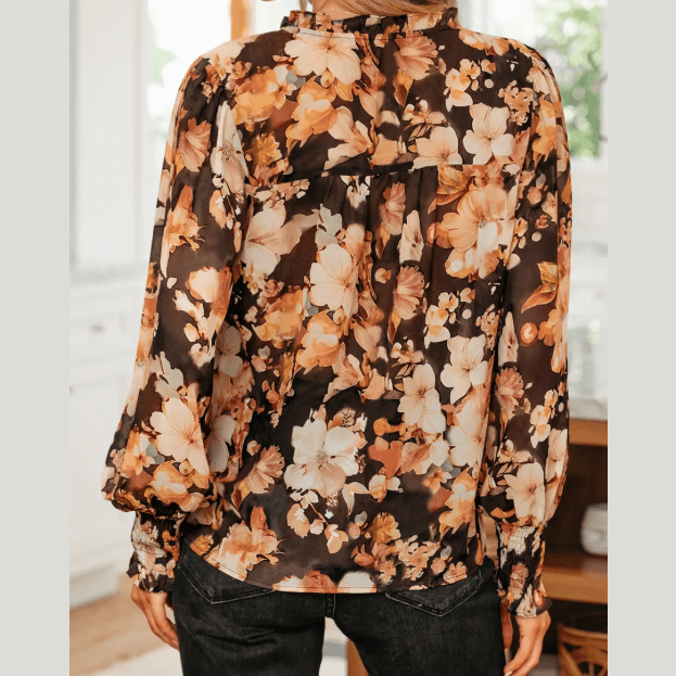 - This womens floral blouse effortlessly gives a cool fall vibe.