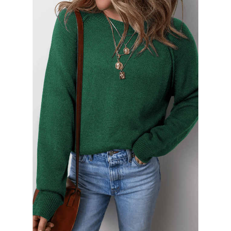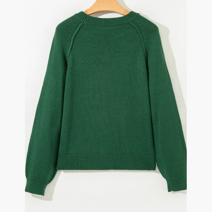 Debra Evergreen Raglan Sleeve Crew Neck Sweater