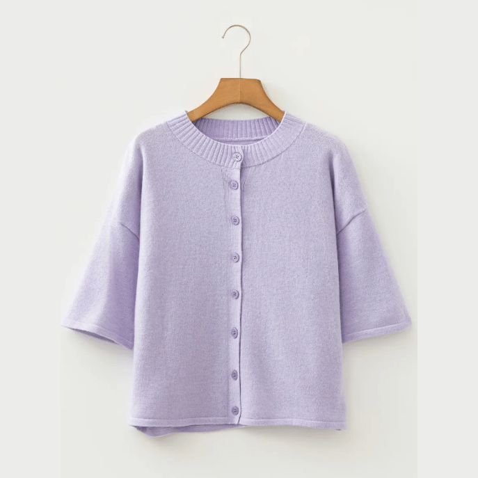 Diandra Lavender 3/4 Sleeve Boxy Knit Button Down Sweater Cardigan