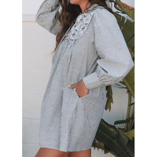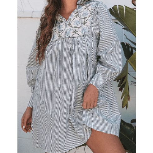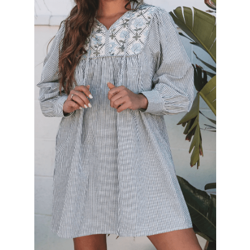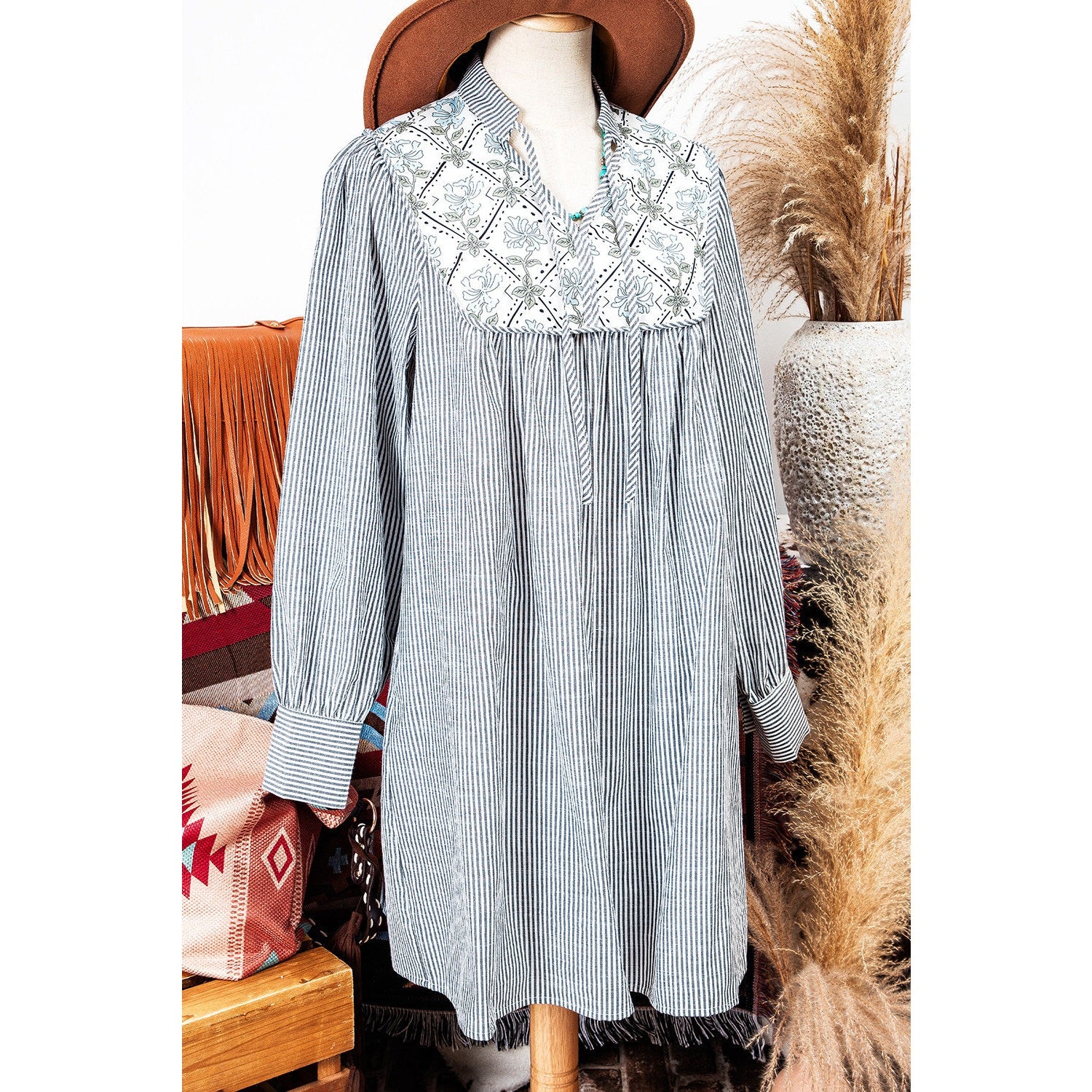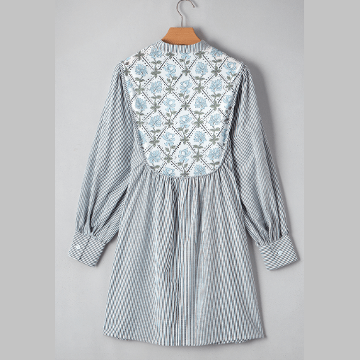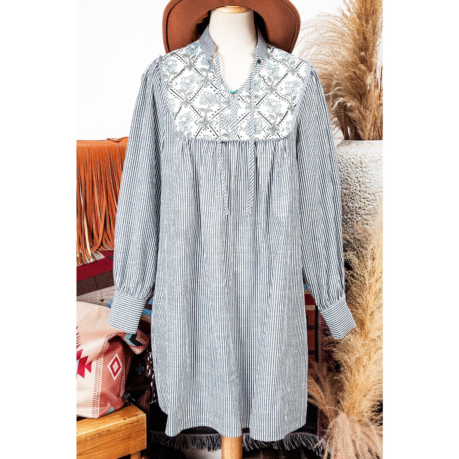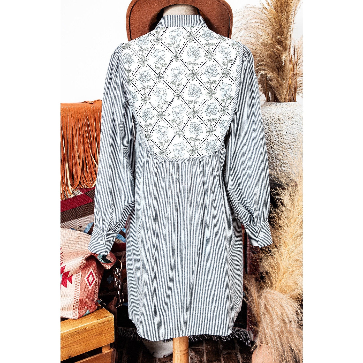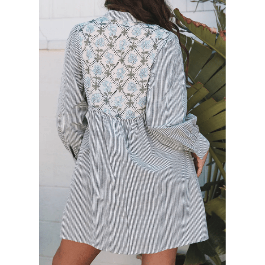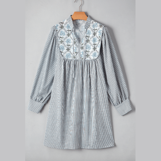 REDUCED!!! Erma Nell Black Stripe Floral Patchwork Tied V Neck Shift Long Sleeve Mini Dress REDUCED!!!