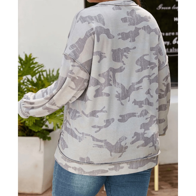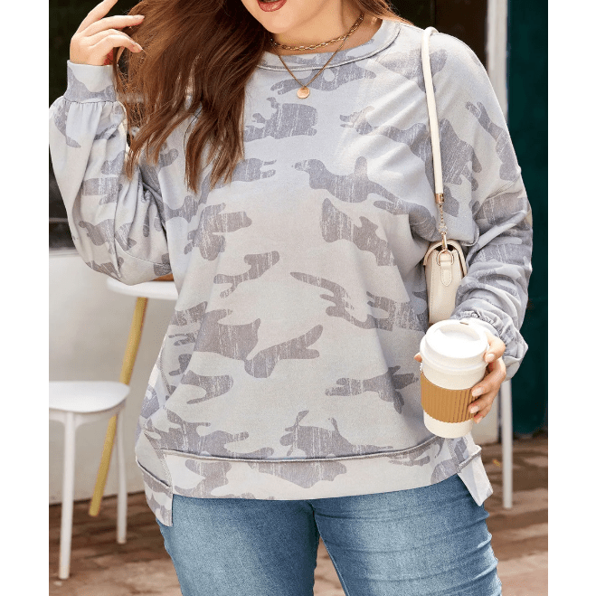 Farah Camouflage Print Round Neck Plus Size Sweatshirt