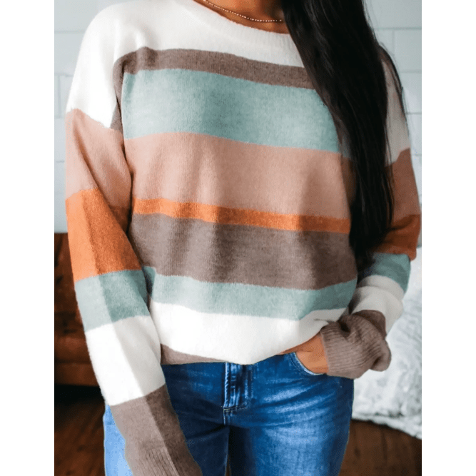 - Stylish striped color block sweater with trendy drop shoulder fit.