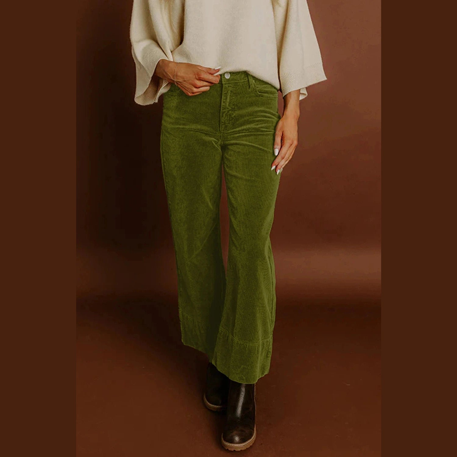 Ferryn Vineyard Green Corduroy Solid Color High Waist Wide Leg Pants