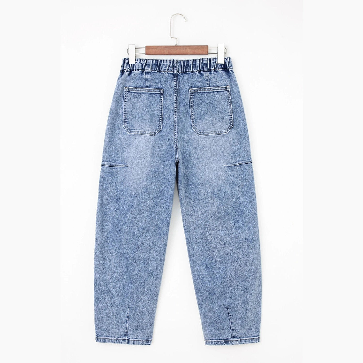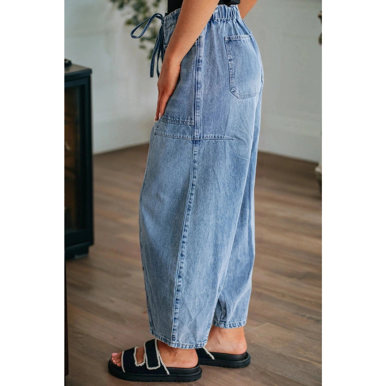 Fionie Myosotis Large Patch Pocket Drawstring Paperbag Waist Barrel Jeans