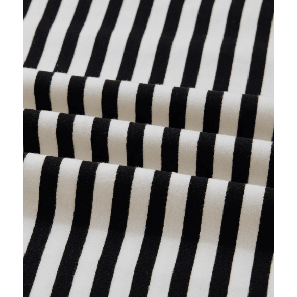 Ginger Black Striped Print Drop Shoulder Lace Trim Bracelet Sleeve Loose Top