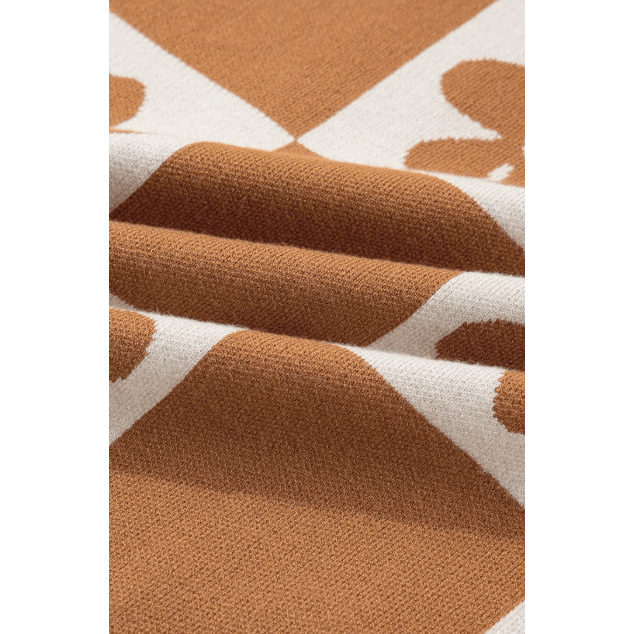 Gloria Brown Flower Plaid Henley Baggy Sweater