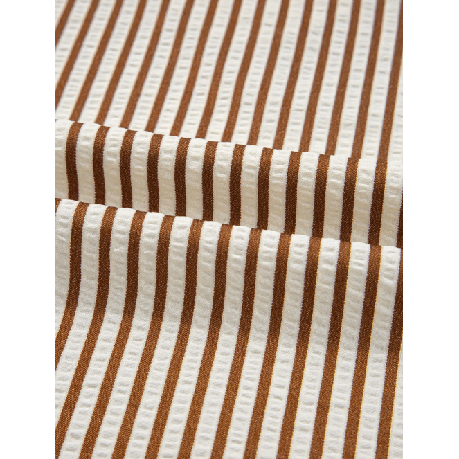Gwen Striped Print Tied Cuffs Split Neck Seersucker Blouse