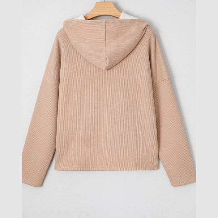 - Adjustable drawstring hood adds casual flair.
