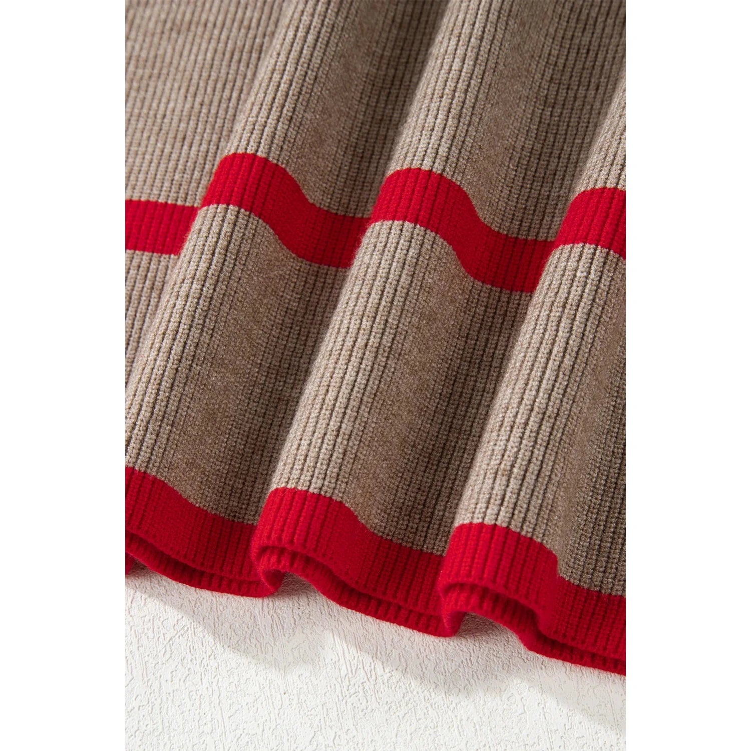 - Ribbed knit with contrasted stripes for a chic style.