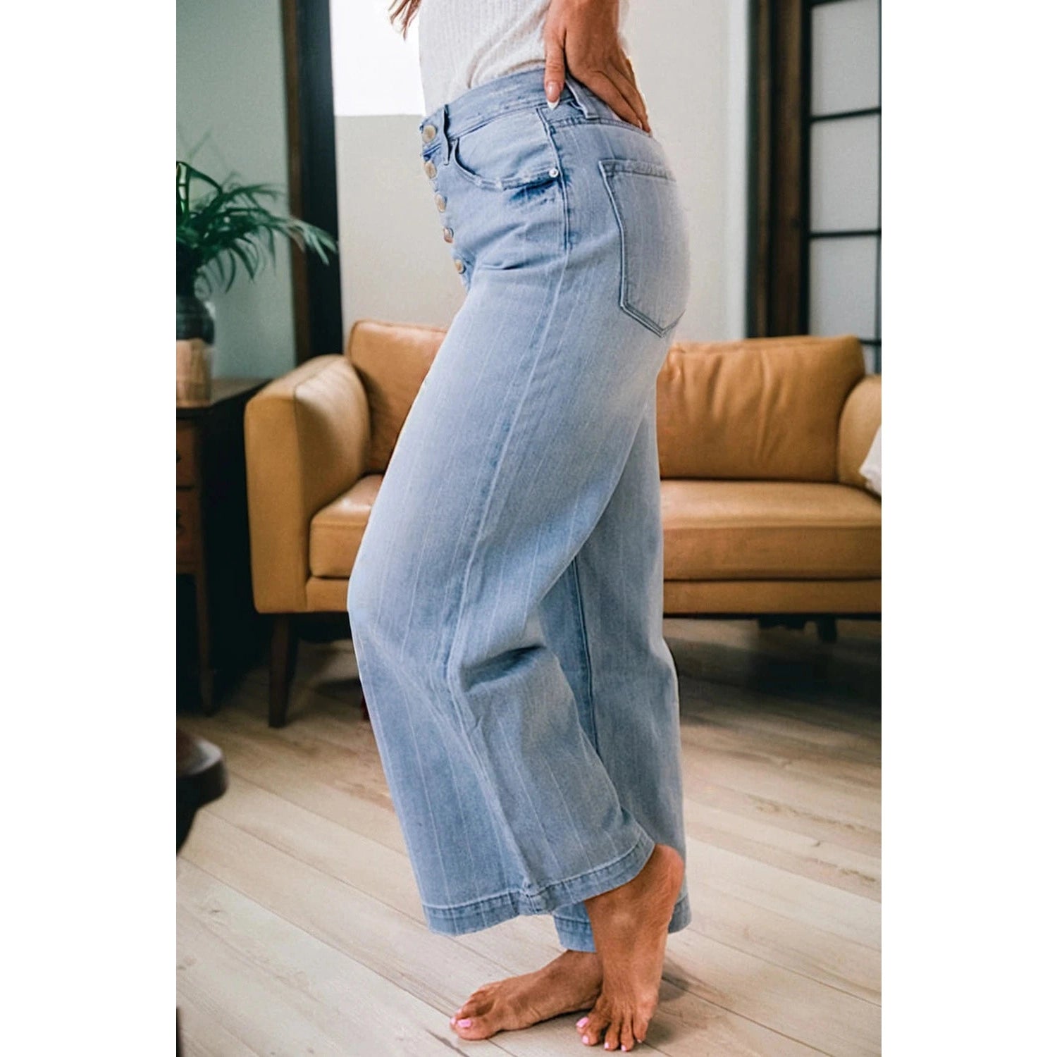 Hancelle Beau Blue Multi Buttons Pinstripe Wide Leg Jeans