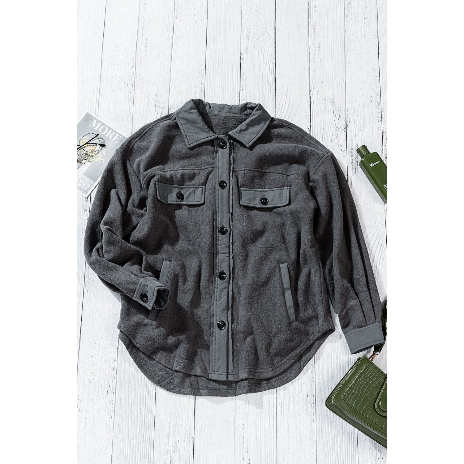 Hayven Grey Turn Down Collar Buttoned Shirt Jacket
