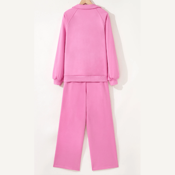 Ingrid Pink Polo Collar V Neck Pullover and Drawstring Sweatpants Set