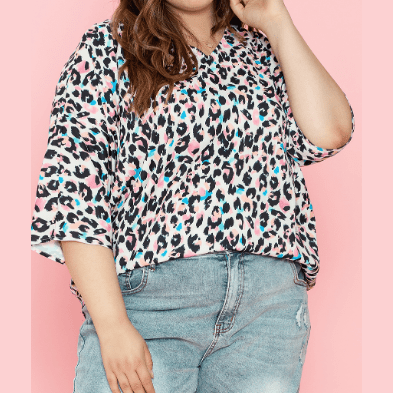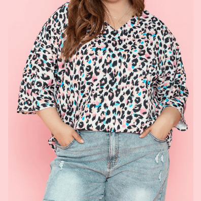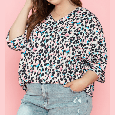 REDUCED!!! Jackie Leopard Print V Neck Batwing Sleeve PLUS SIZE Top REDUCED!!!