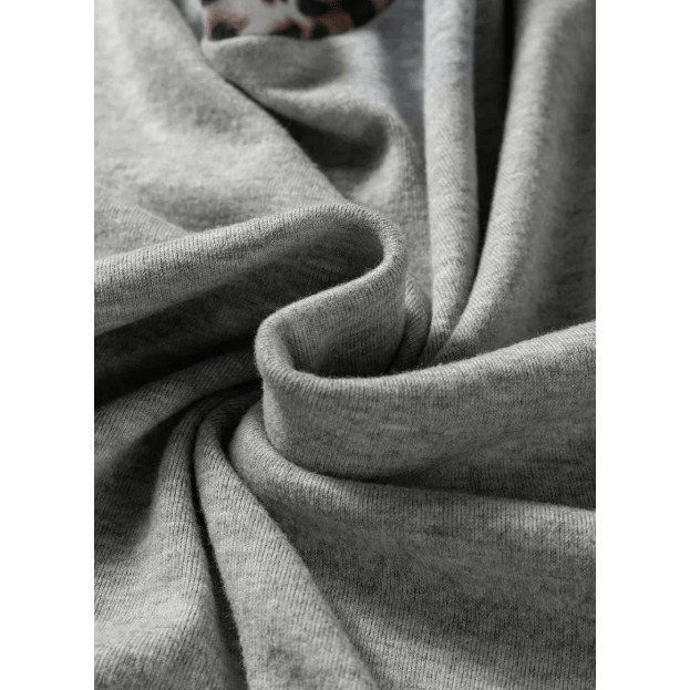 Jeneen Grey Color Block Leopard Patchwork Dolman Sleeve High Low Baggy Sweatshirt