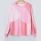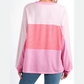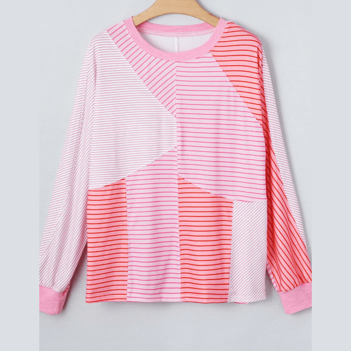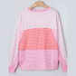 Jenesis Sachet Pink Striped Colorblock Exposed Seam Casual Long Sleeve Top