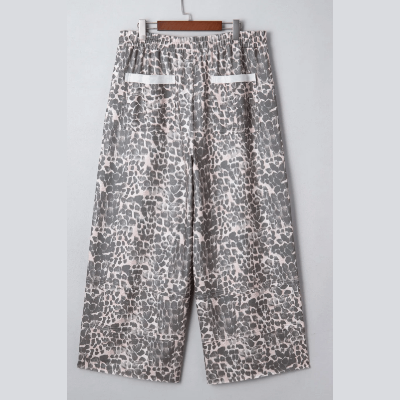 Josephina Khaki Plus Size Leopard Print Raw Edge Patch Pocket Drawstring Loose Pants
