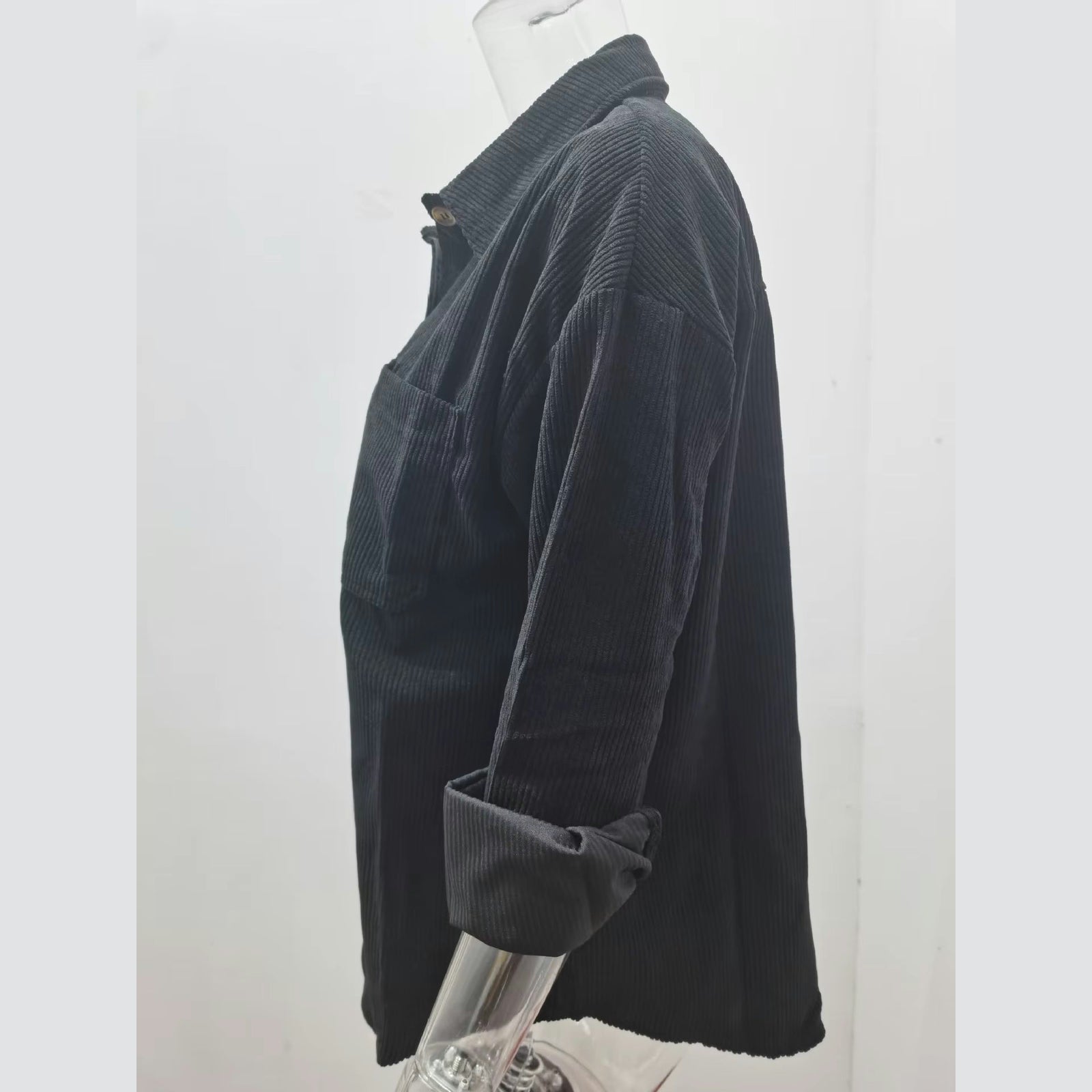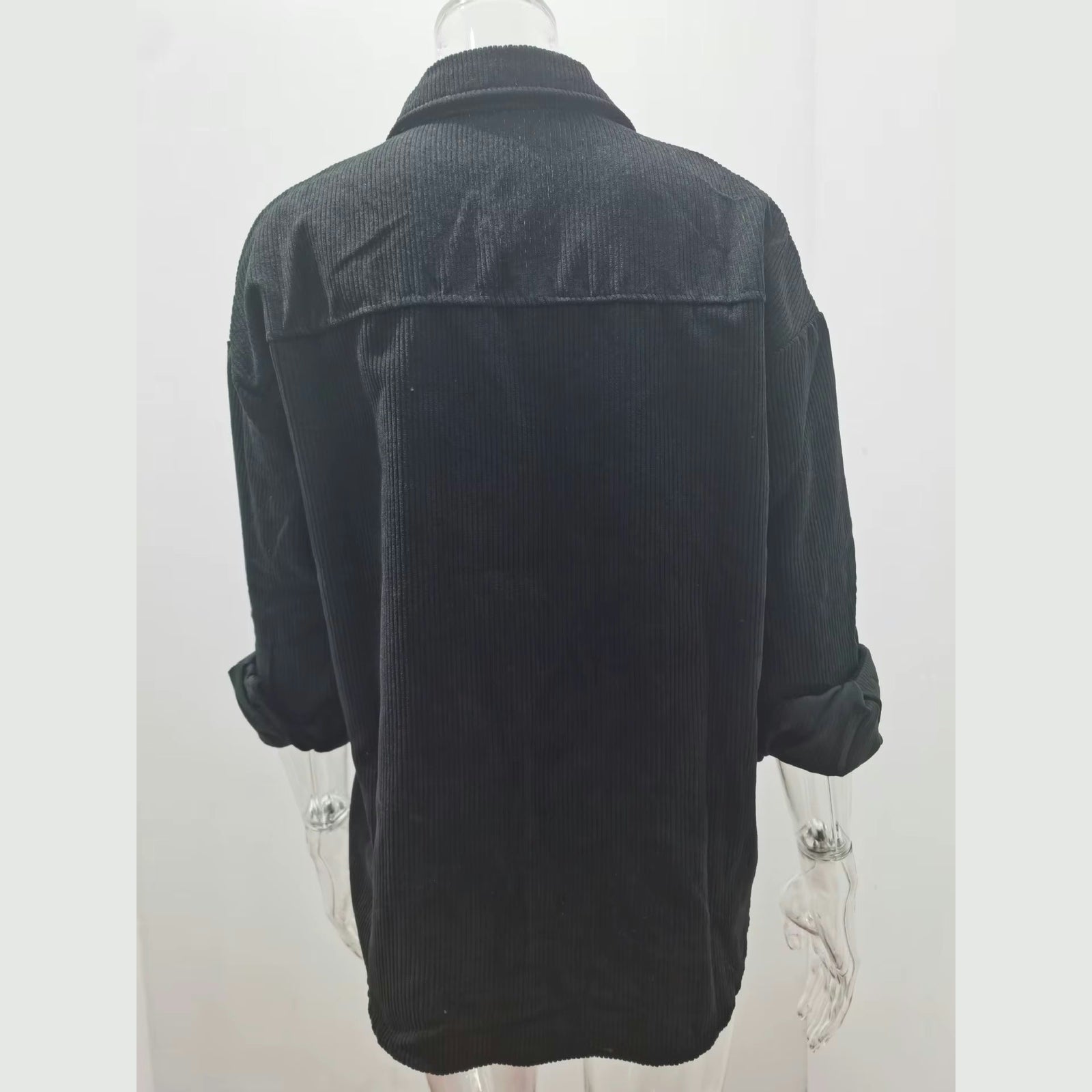Kaleem Black Corduroy Button Up Long Sleeve Shirt