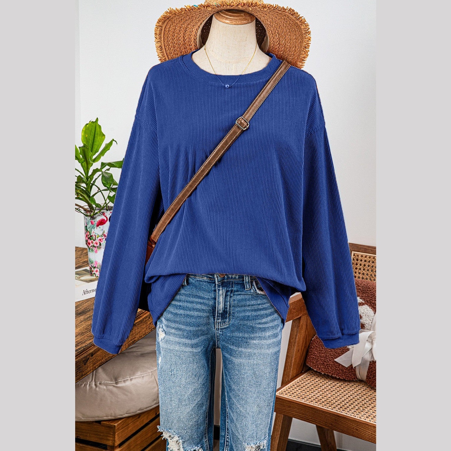 Karmen Dark Blue Ribbed Corded Oversized Sweatshirt