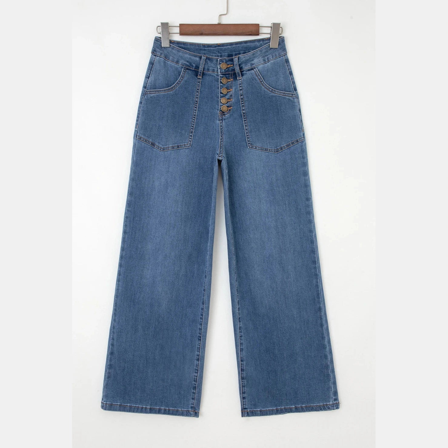 Kilby Multi Buttons High Waist Wide Leg Jeans With Pockets
