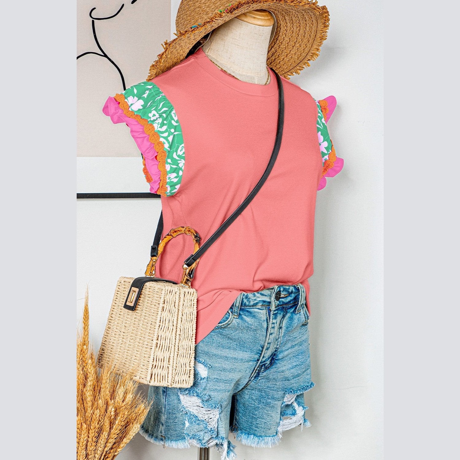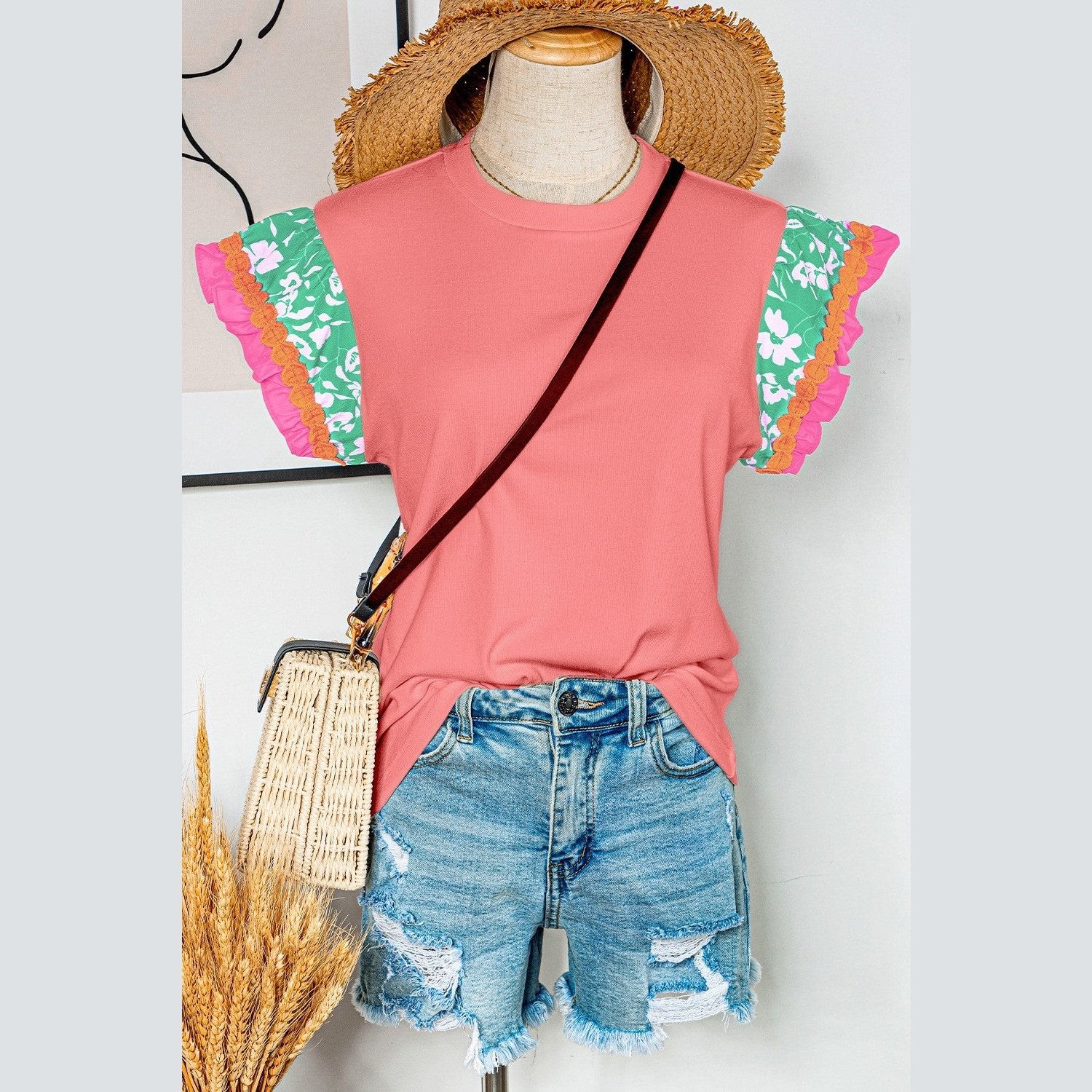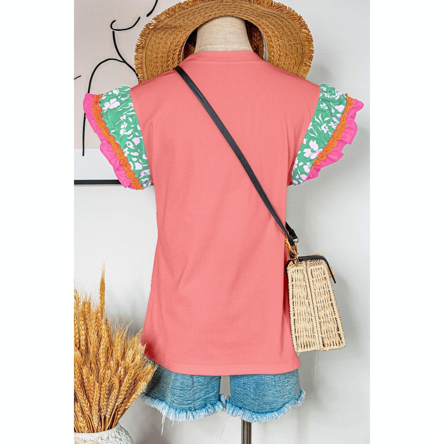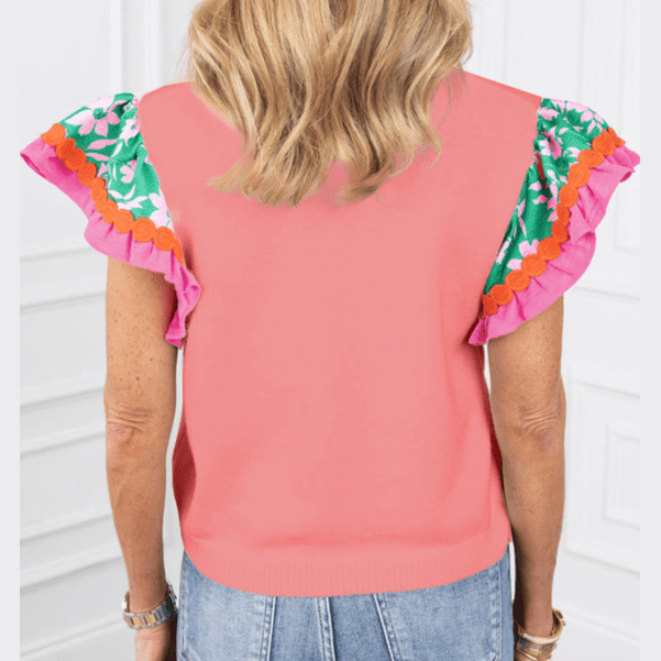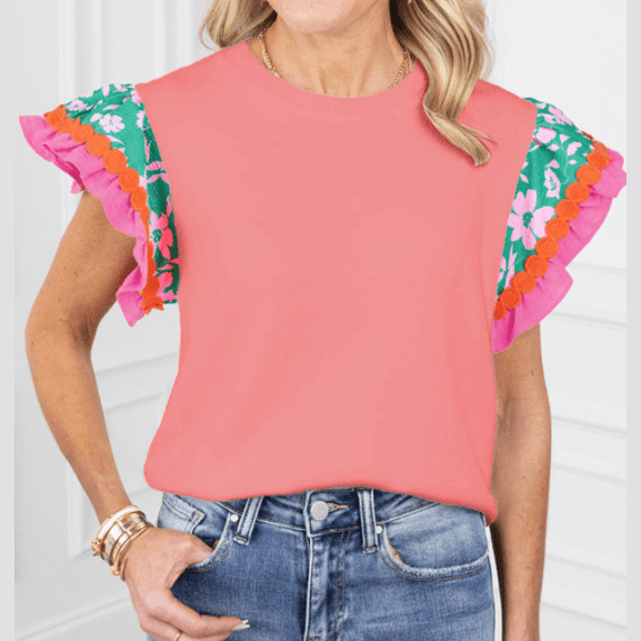 REDUCED!!! Kloe Peach Blossom Contrast Ricrac Floral Sleeve Top REDUCED!!!