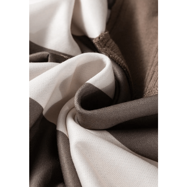 Lacey Brown Striped Color Block Zip Collar 3/4 Sleeve Oversize Sweatshirt