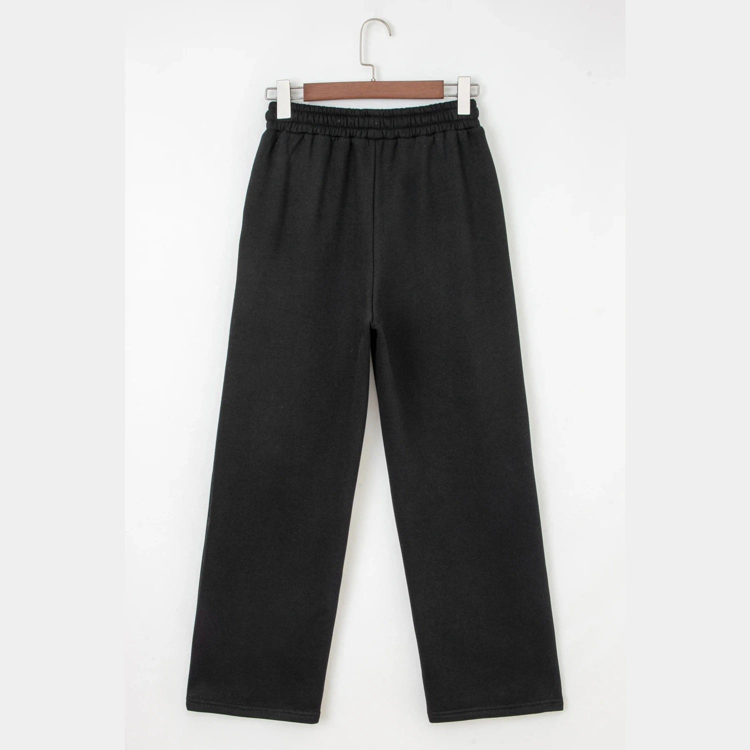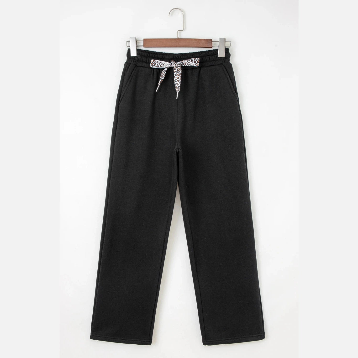 Lachelle Black Fleece Lined Leopard Drawstring Elastic Waist Solid Pants