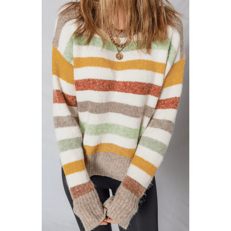 Laylee Multicolour Stripe Drop Shoulder Crew Neck Sweater