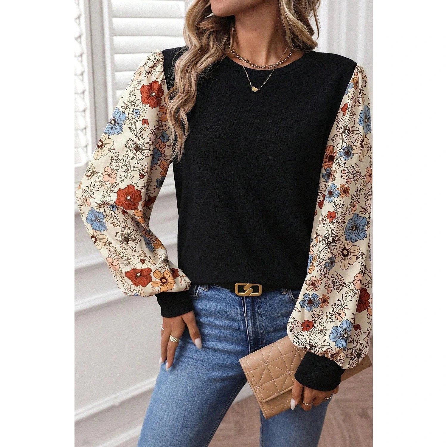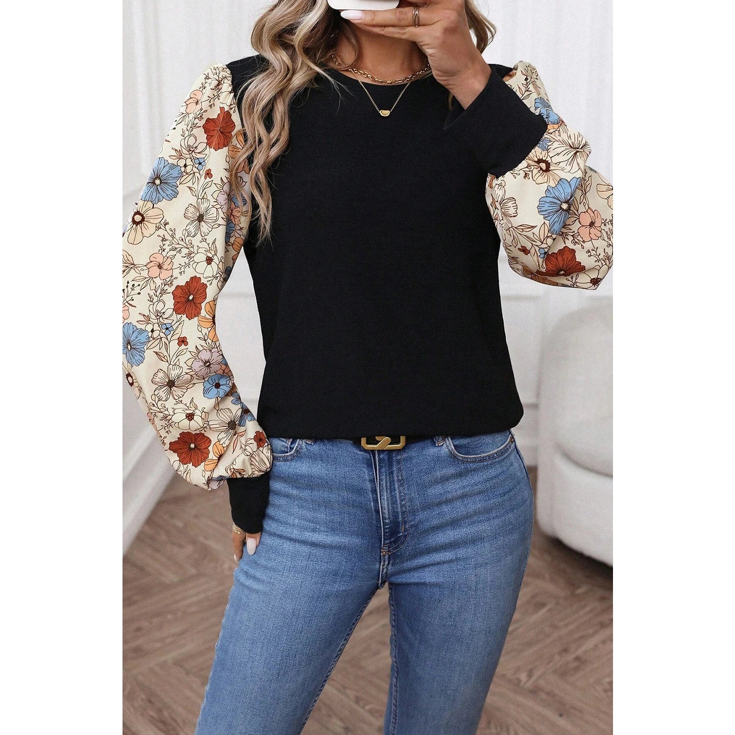 Lily Rose Flower Puff Sleeve Patchwork Top