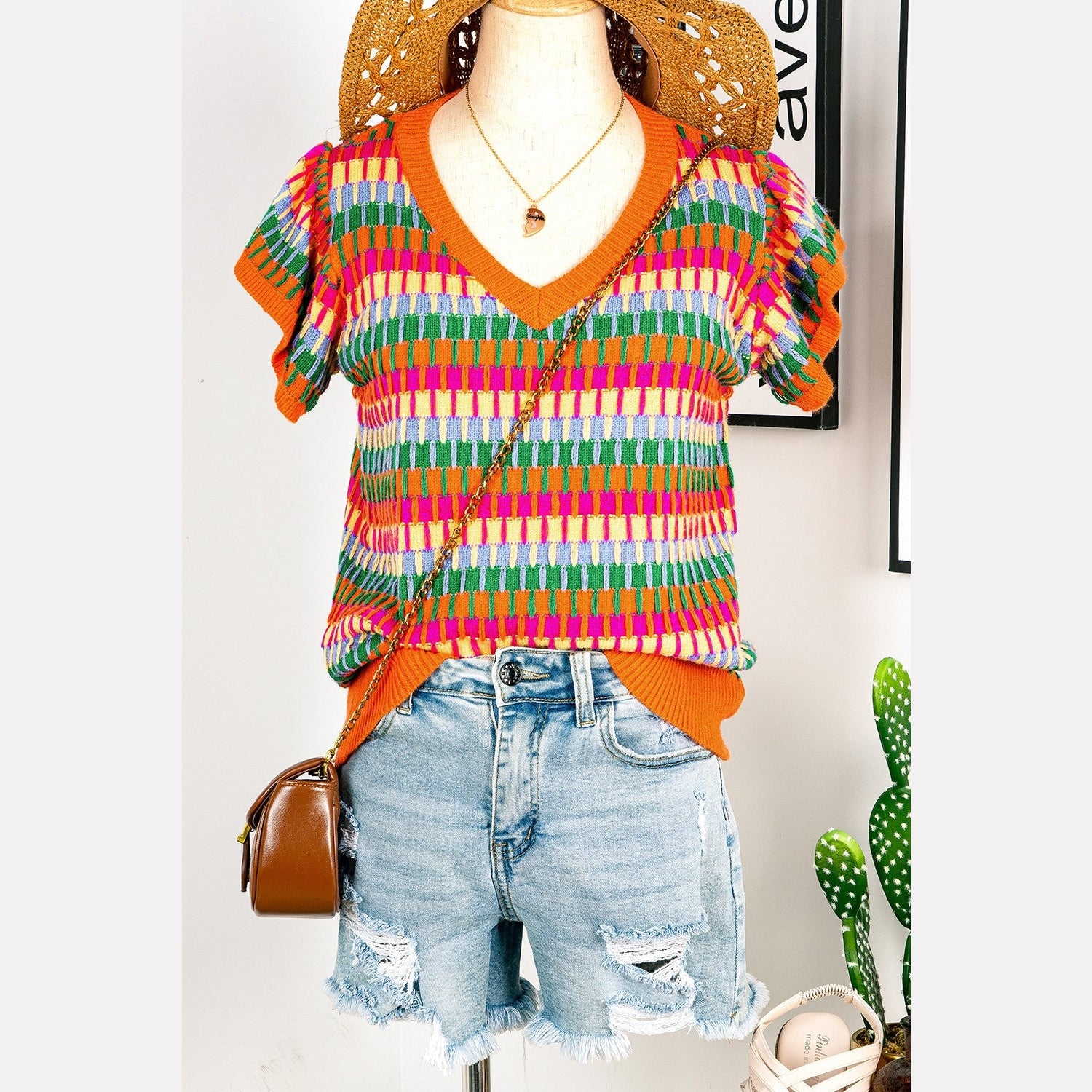 REDUCED!!! Lisa Orange Multi Flutter Sleeve Knitted Sweater Top REDUCED!!!