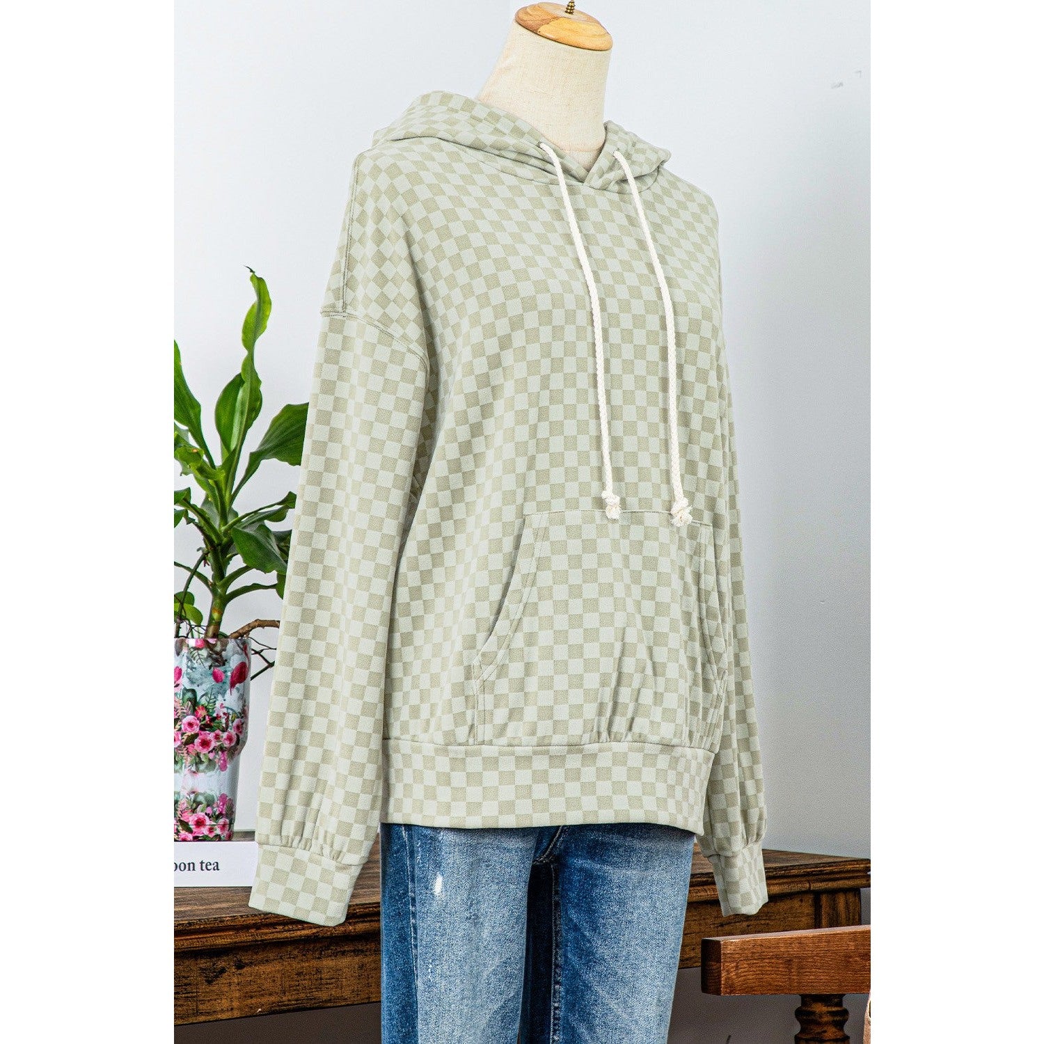 REDUCED!!! Locie Green Checkered Print Kangaroo Pocket Drawstring Hoodie REDUCED!!!