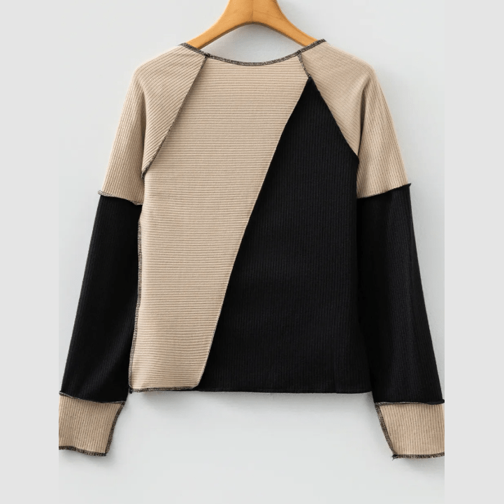 Lola Black Irregular Color Block Seaming Trim Rib Knit Top