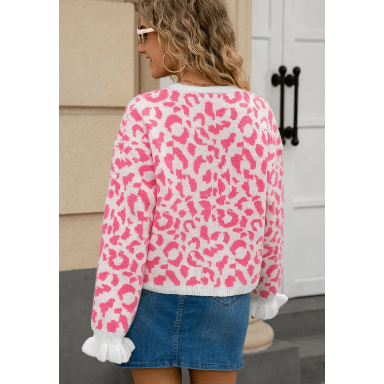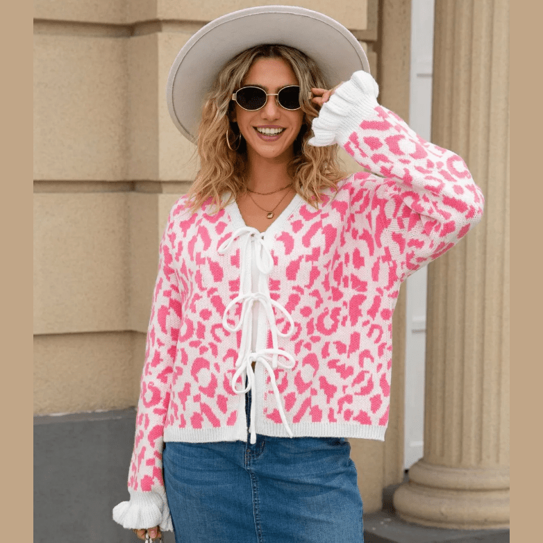 Madonna Bow Front Ruffled Cuff Leopard Cardigan - 3 Colors