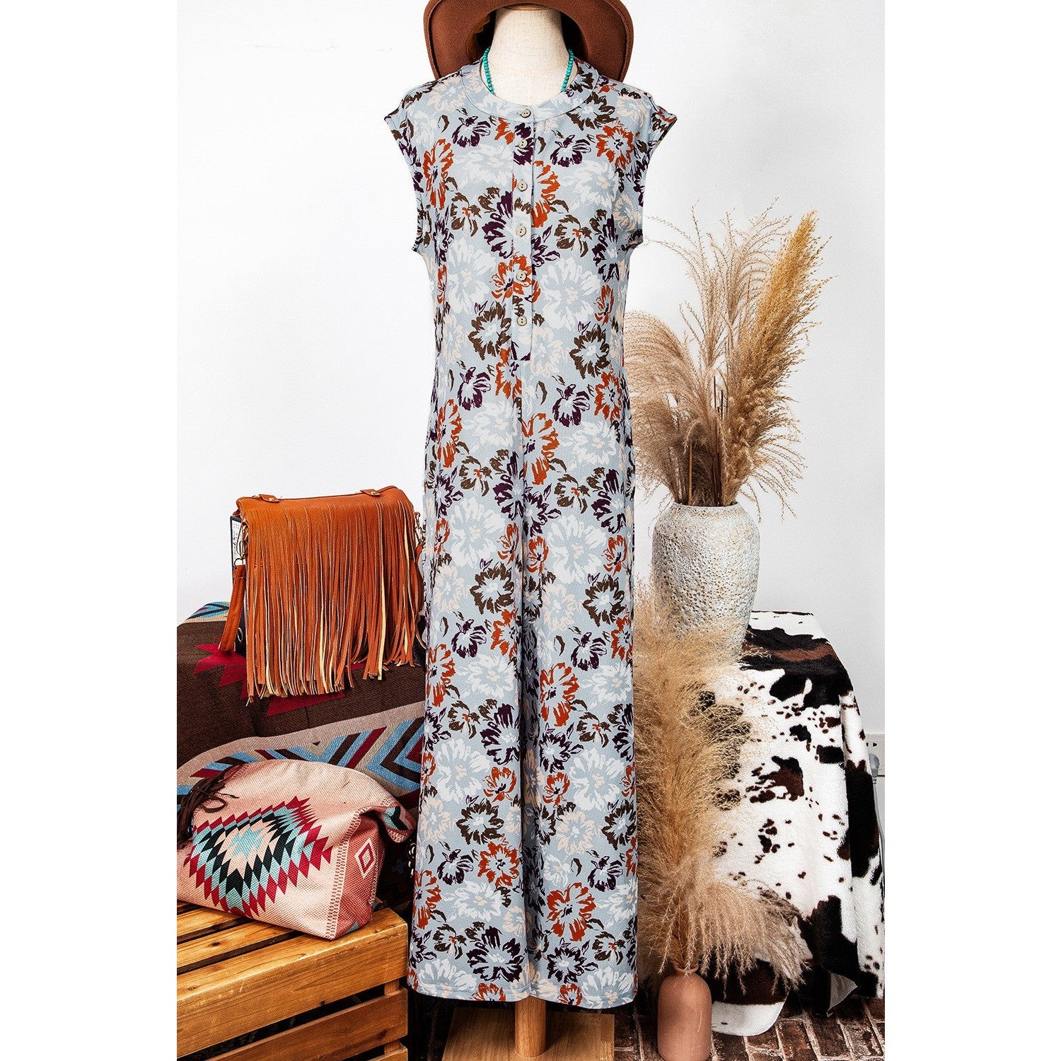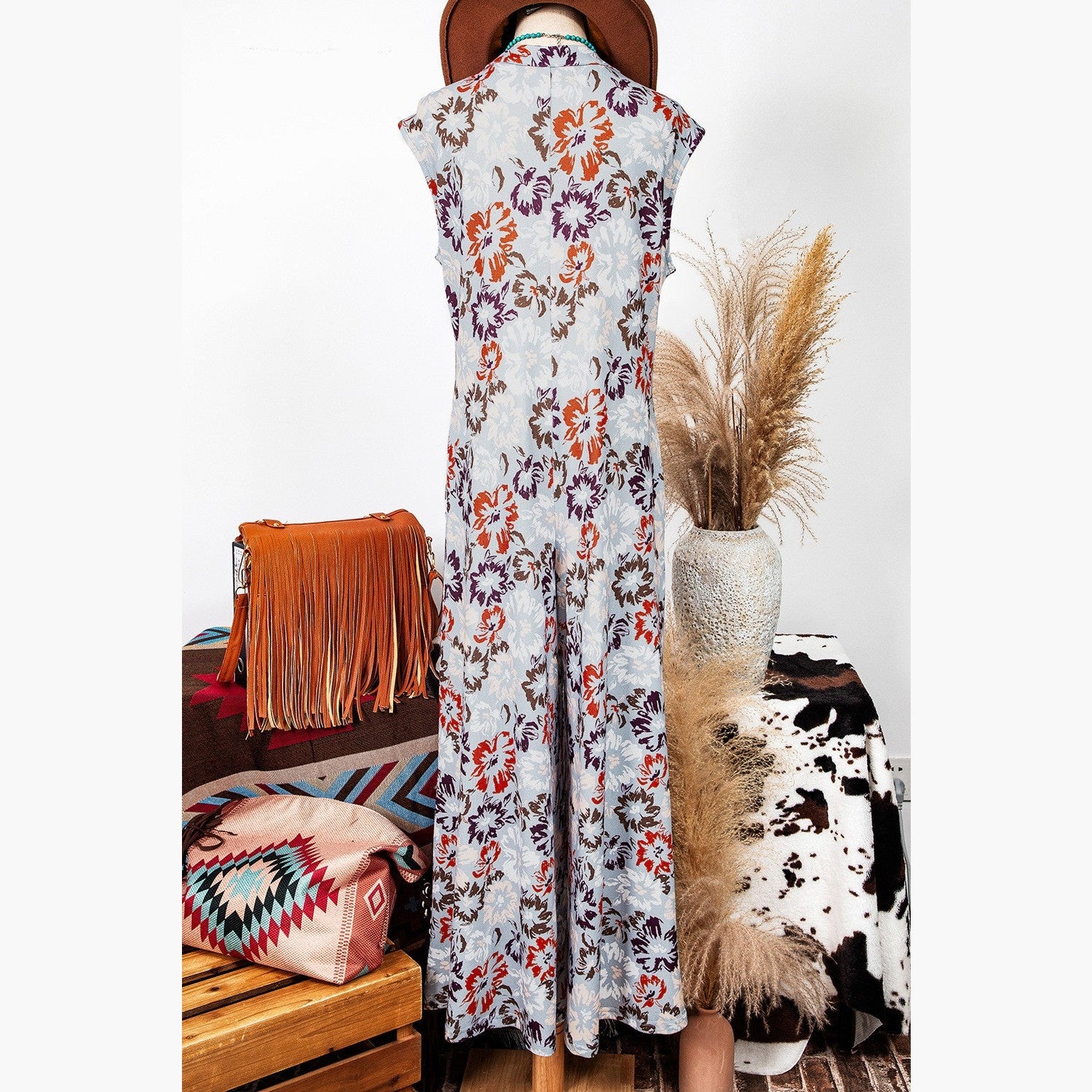 - Stylish floral print gives a chic look to this jumpsuit.