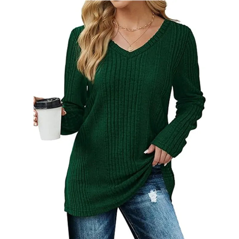 Marbella Green V Neck Loose Fit Sweater