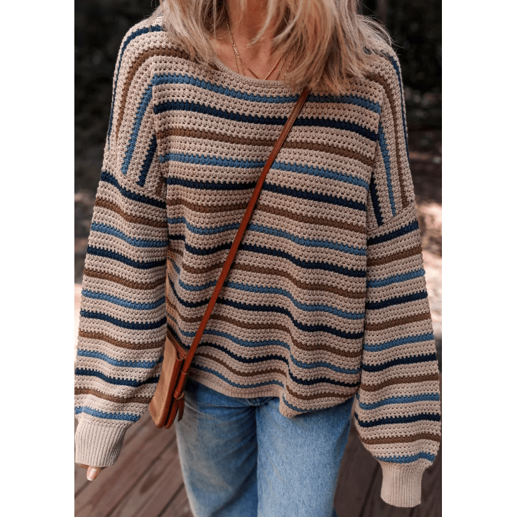 Marsha Multicolour Striped Knitted Drop Shoulder Round Neck Sweater