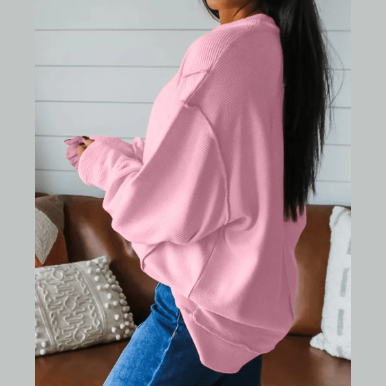 Maureen Pink Horizontal Ribbed Exposed Seam Detail Drop Shoulder Baggy Pullover