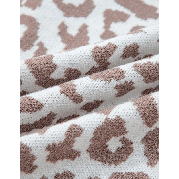 Mimi Khaki Leopard Drop Shoulder Chunky Knitted Cardigan Sweater