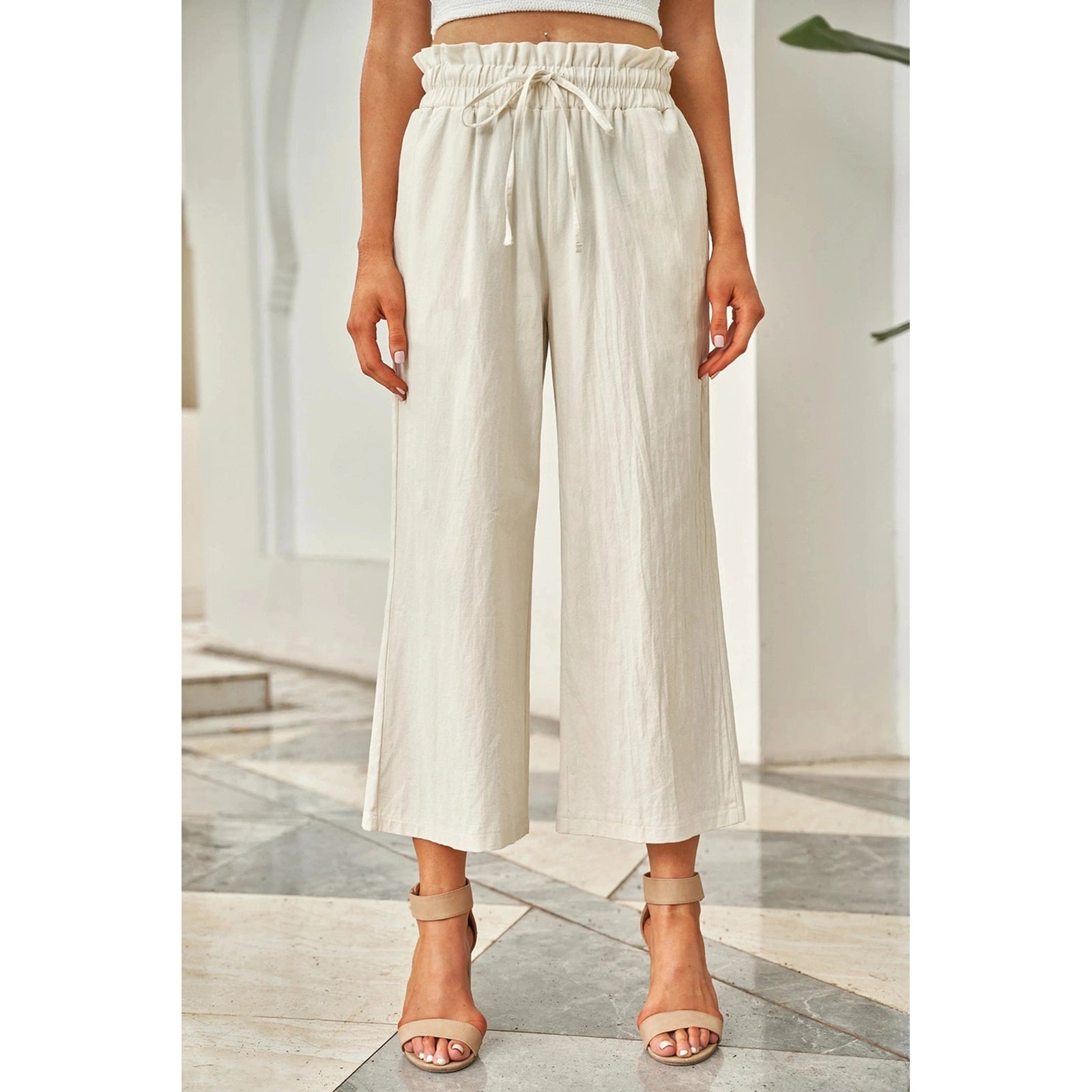Minni Paperbag Waist Straight Leg Cropped Pants