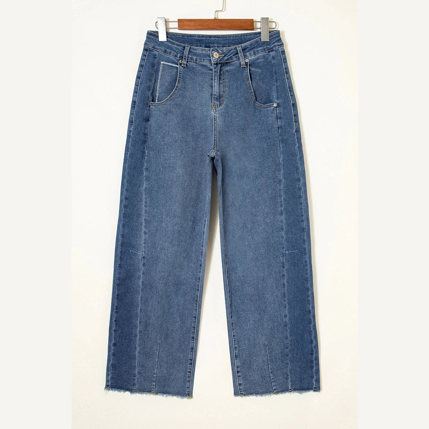 Mira Ashleigh Blue Stitched Raw Hem Wide Leg Loose Jeans