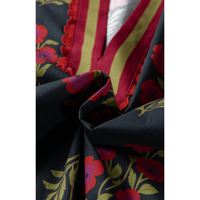 - Featuring a stunning floral print, ricrac detail, and striped patchwork.